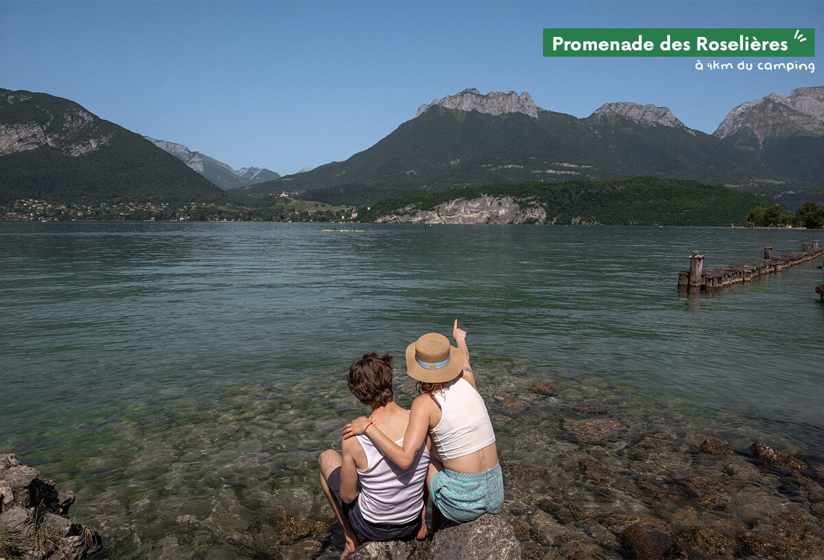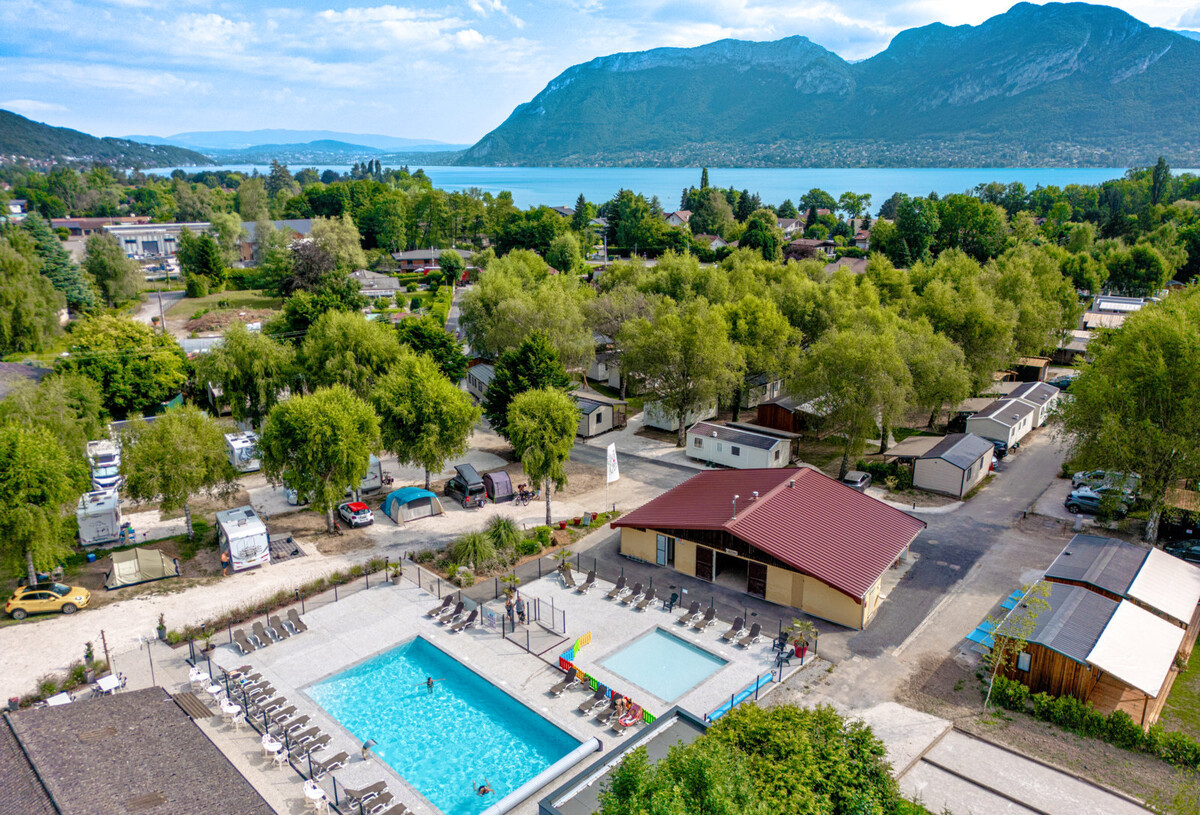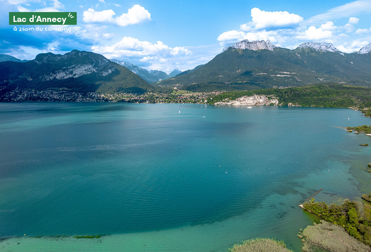 De camping ligt in Sevrier, aan de oevers van het meer van Annecy, in een rustige omgeving, ideaal om te ontspannen en te genieten van de natuur.