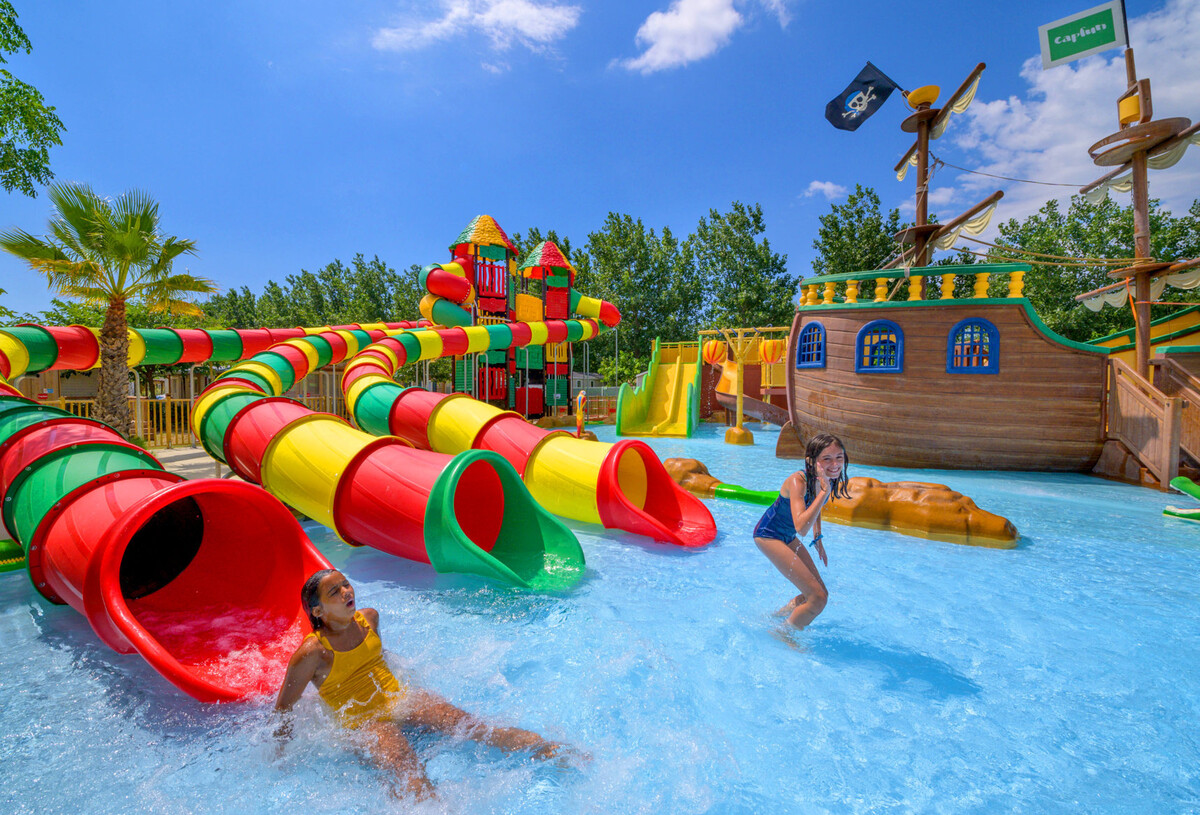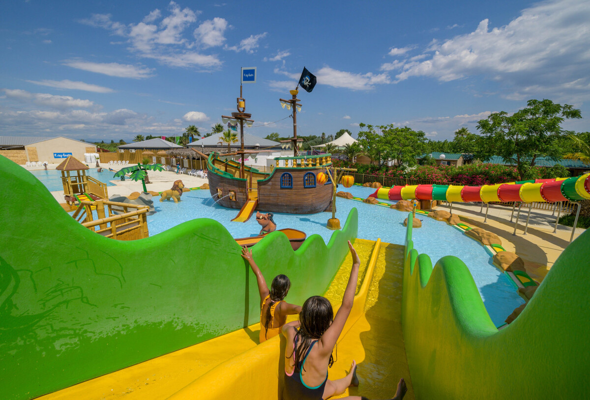 Zijn waterpretterrein: peuterbad, piratenschip en glijbanen