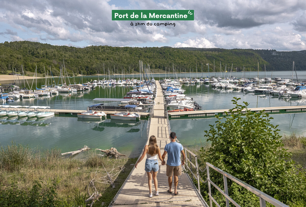 Camping Trélachaume biedt u een onderdompeling in de wilde en ongerepte natuur. In de buurt van de camping nodigt het meer van Verglant u uit om te genieten van eindeloos zwemmen. Maak van de gelegenheid gebruik om te kanoën, paddleboarden, windsurfen en kajakken in het turquoiseblauwe water van de Jura-meren. Het majestueuze omliggende bos, de vredige weiden, uitgestrekte wijngaarden en bergmassieven zullen zeker natuurliefhebbers aanspreken! Verken dit kleine paradijs te voet, per fiets of te paard. Bezoek de onmisbare watervallen van de Jura op hun mooiste plekken, zoals de waterval van Frasnée, de waterval van Climante of de waterval van Hérisson. Op 800 meter van Camping Trélachaume verwelkomt het strand van Mercantine natuurliefhebbers en zwemliefhebbers met zijn fijne zand, zodat u tijdens uw verblijf in de Jura veel plezier kunt hebben. Wilt u de hoogte in? Waag u aan de top van de rotsachtige pieken op meer dan 800 meter hoogte en bereik het kasteel van Oliferne. U zult betoverd worden door het prachtige uitzicht op de valleien van Bienne en Ain, tot aan de Mont Blanc. In de buurt van Camping Trélachaume mag u niet vergeten om verschillende niet te missen bestemmingen te verkennen: de grotten van Moidons, het strand van Bellecin, het Belvédère van La Roche aux Corneilles en de Pont de la Pyle. Glijd aan boord van een boot over het idyllische Jura-meer en ontdek onverwachte ontmoetingen met de fauna en flora. Ga op verkenningstocht naar de 3 jachthavens van de Jura: de haven van La Saisse in Pont de Poitte, voor vissersboten, de haven van Le Meix, vooral voor snelle boten en waterskiën, en de haven van Mercantine in Maisod, meer geschikt voor zeilboten en op slechts 2,2 km van Camping Trélachaume.
