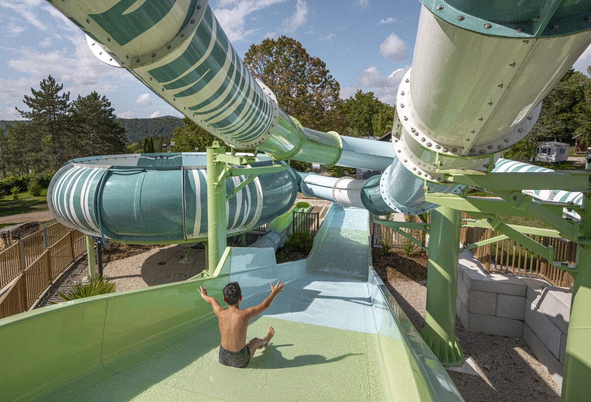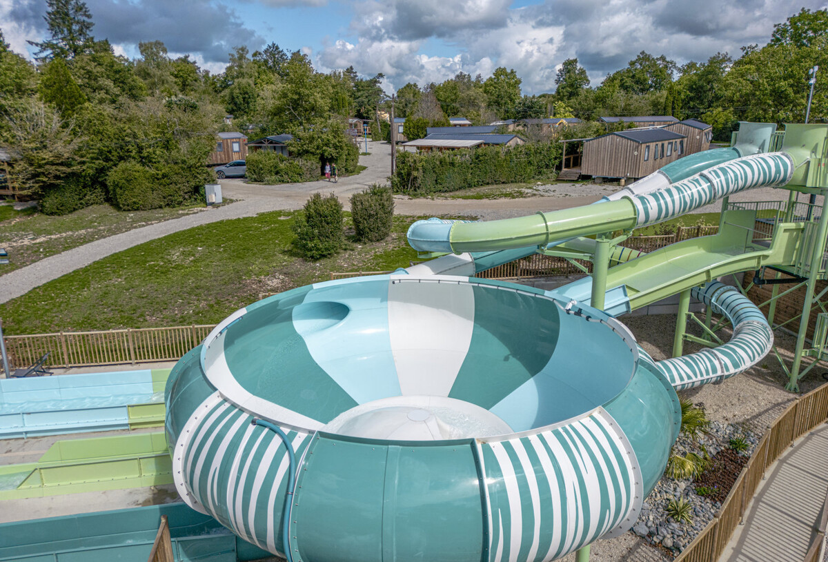 Geniet van uw vakantie in het waterpark van Camping Trélachaume! Beleef uw mooiste momenten met familie, vrienden of met z’n tweeën in het verwarmde zwembad van 200 m² met uitzicht op het meer, op de Spacebowl- en Rampslide-glijbanen! Ontspan in de zon op de ligstoelen bij het zwembad… Het programma: luieren en ontspannen, perfect!