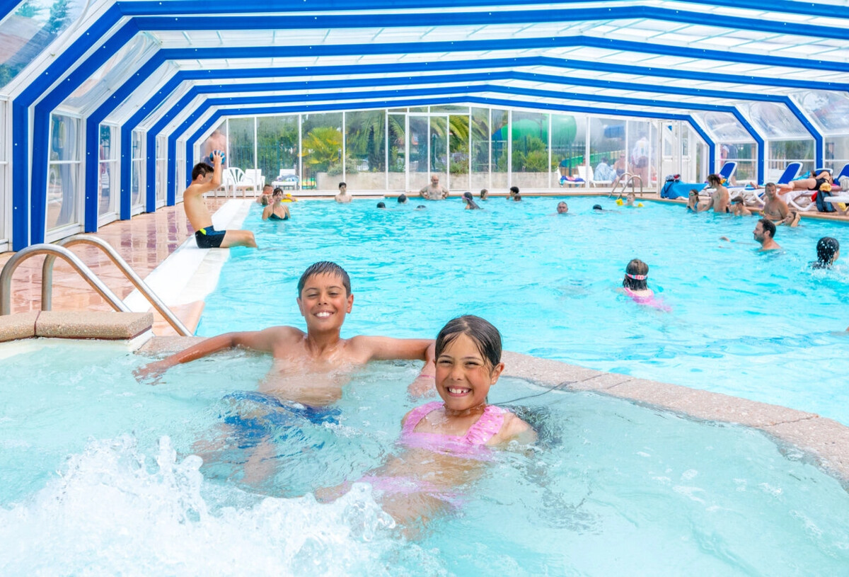 Ons overdekt zwembad is verwarmd vanaf de opening tot de sluiting van de camping- Balneo, jacuzzi (half mei tot half september)