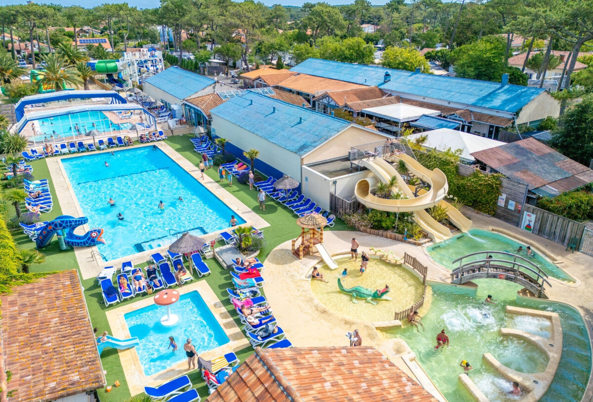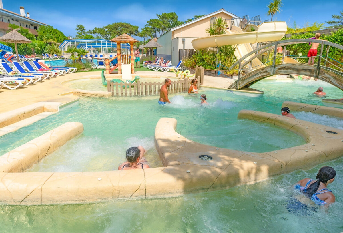 Voor u : een verwarmd zwembad met een spa en waterval, een 25-meter zwembad, 2 verwarmde peuterbaden met watergames voor kinderen, glijbanen, waaronder een Spacebowl, een verwarmd thalassotherapie-bad met 4 anatomische banken, een spa, 3 geisers en een massagerivier.