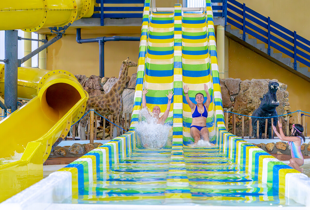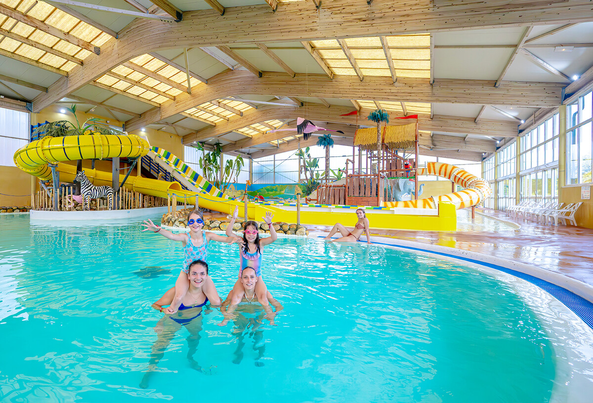 - Groot overdekt zwemparadijs in een kleurrijke, bloemrijke omgeving met een groot zwembad, peuterbad en glijbanen (1 Spacebowl, 1 Kamikaze en 4 Pentagliss en 2 glijbanen) om jong en oud te vermaken.