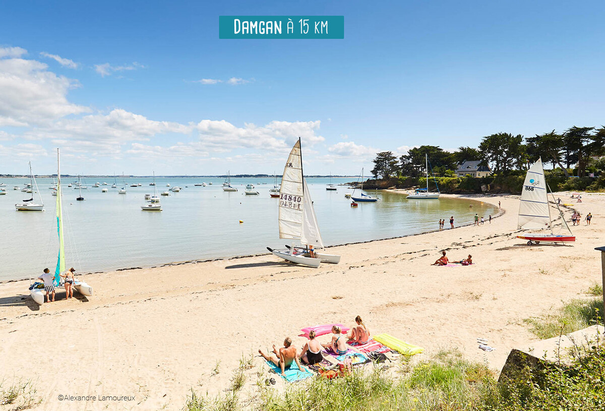 Bezienswaardigheden Damgan (15,5 km), Rochefort-en-Terre (22,5 km), Vannes (25 km), La Roche-Bernard (25 km), Le Golfe du Morbihan et la baie de Quiberon (30 km), Mine d'Or - Les falaises dorées de Pénestin (32 km), Parc de la Préhistoire de Bretagne (24 km), La Gacilly (41 km), Cairn de Gavrinis (42 km), Guérande (47 km), Grand menhir brisé de Locmariaquer (56 km), Alignements de Carnac (56 km), Musée des beaux-arts La Cohue (25 km), Château de l'Hermine (25 km), Château de Suscinio (27 km), Abbatiale de Saint Gildas de Rhuys (33 km), Cairn du Petit Mont à Arzon (37,4 km), Port-Navalo (40 km). Meer informatie