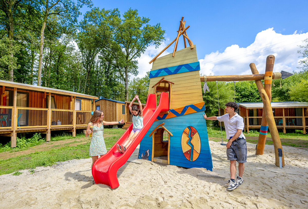 - 1 prachtig buitenzwembad met zwembad, glijbanen (1 Tsunami met boeien, Pentagliss...) en peuterbad voor de allerkleinsten met 3 miniglijbanen. Meer informatie