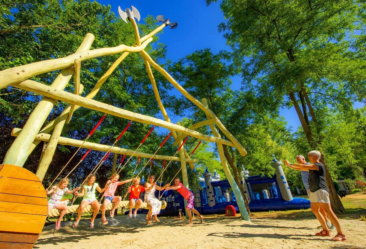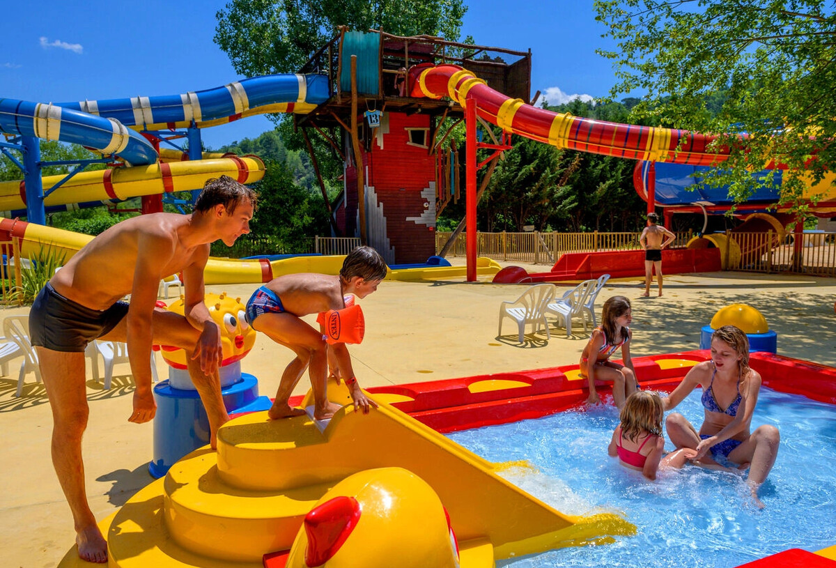 De camping beschikt over twee waterparken: een buitenzwembad met een peuterbad en een binnenbad met de glijbanen Double Slide en Space Bowl voor optimaal plezier voor het hele gezin.