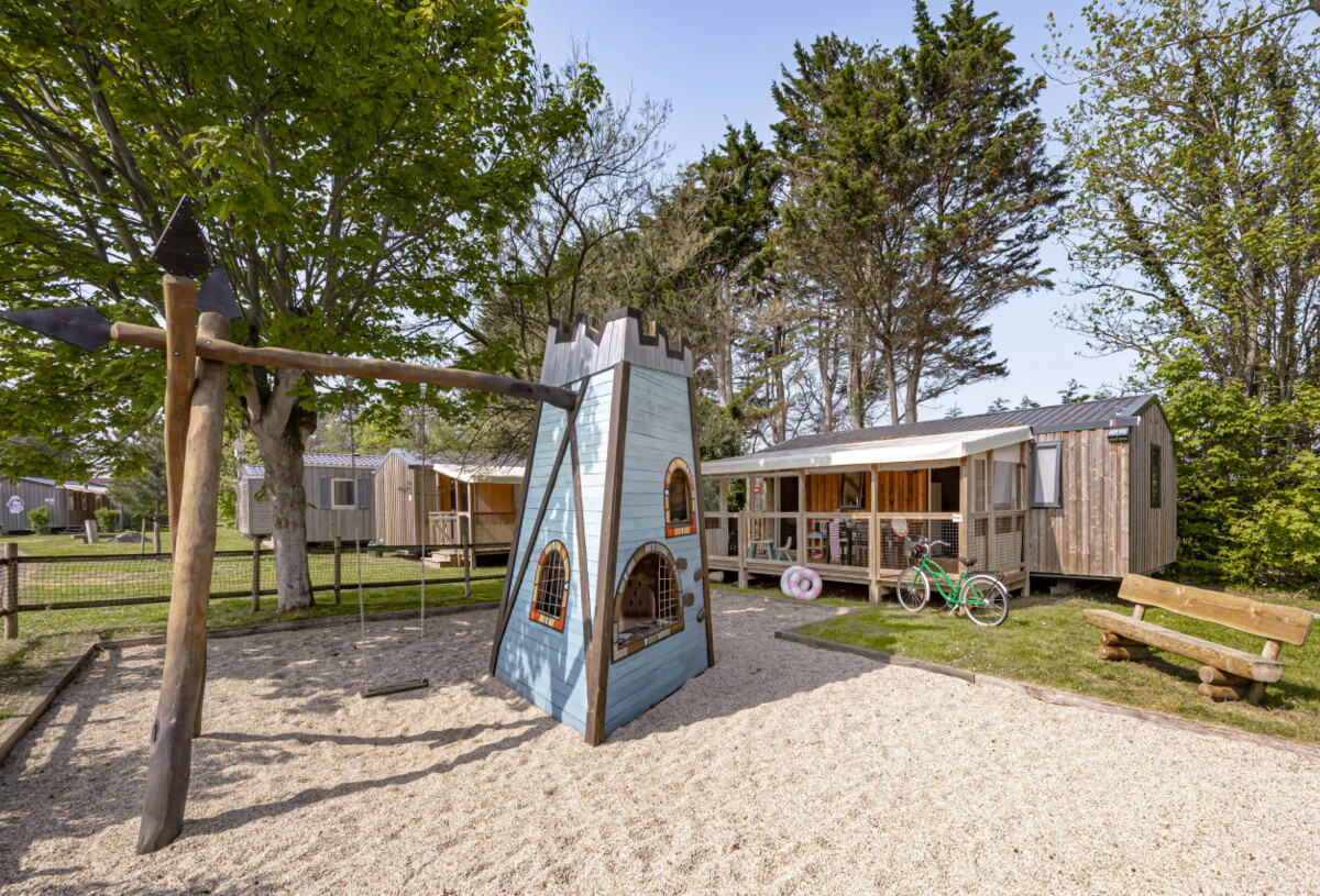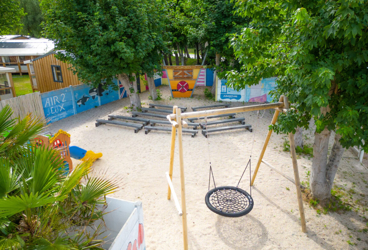 Ja, de camping beschikt over een speeltuin en een mini-boomtoppenavonturenpark.