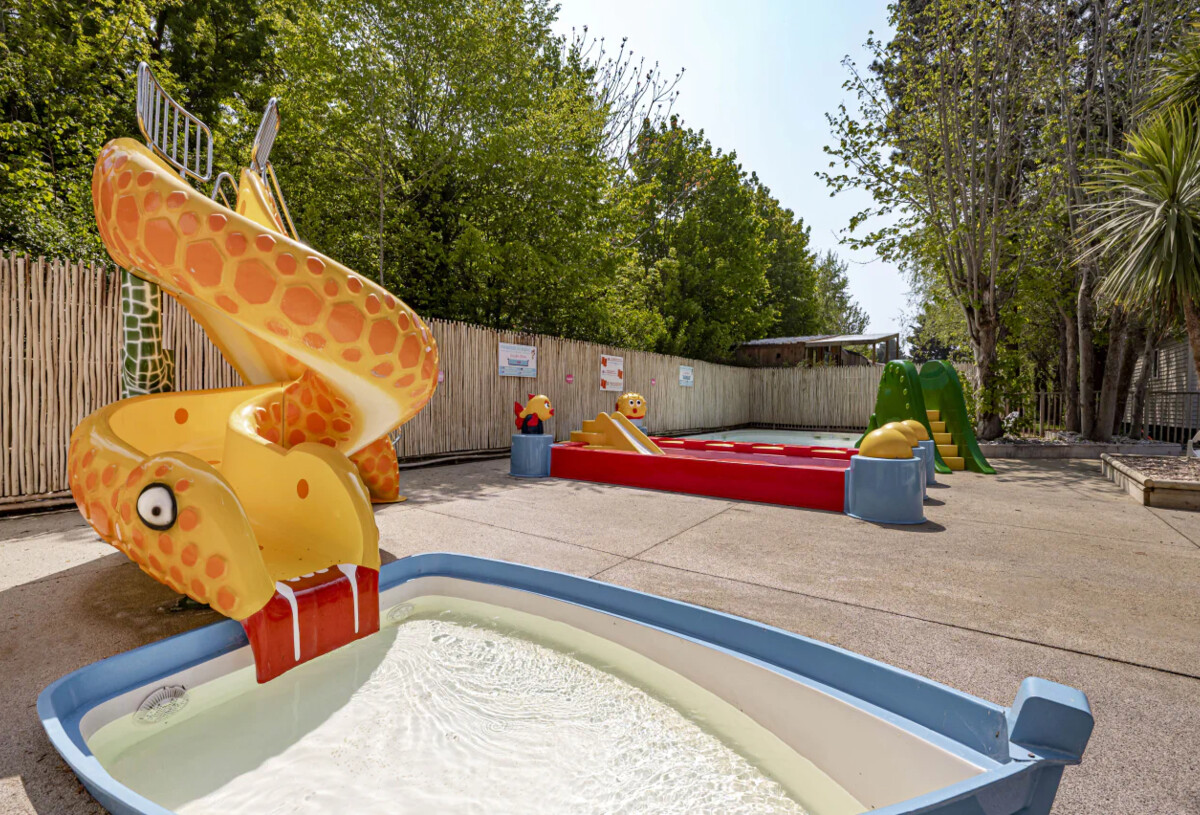 - Een peuterbad met Vipère-glijbaan, speciaal ontworpen voor kinderen jonger dan 6 jaar, biedt een exclusief en veilig glij- en zwemgedeelte.